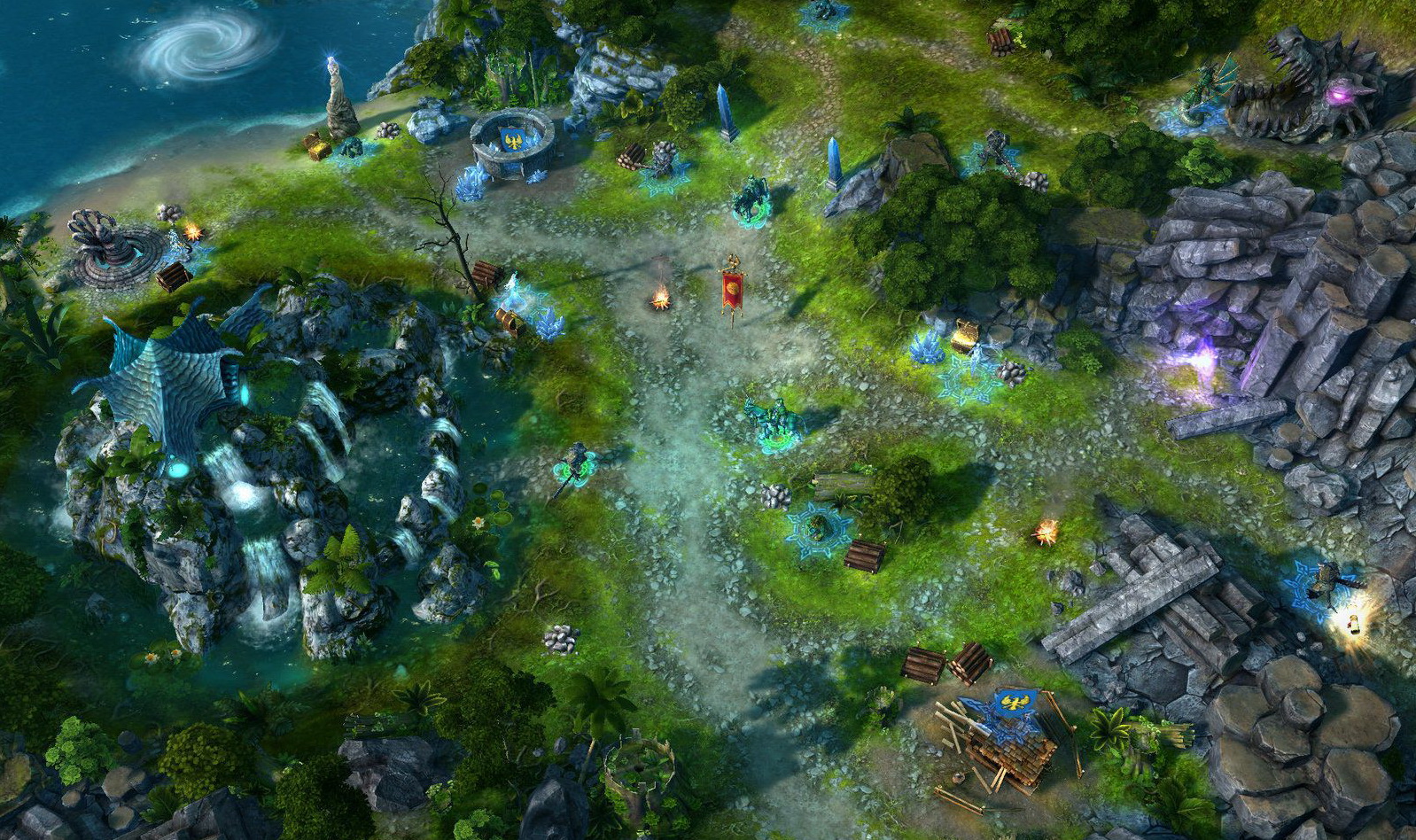 當(dāng)部隊(duì)里有英雄陣亡時(shí)可以直接在附近城堡、神廟復(fù)活,或者使用復(fù)活藥水復(fù)活。這就使得英雄可以長(zhǎng)期在前線作戰(zhàn)而無(wú)須擔(dān)心補(bǔ)給問(wèn)題。