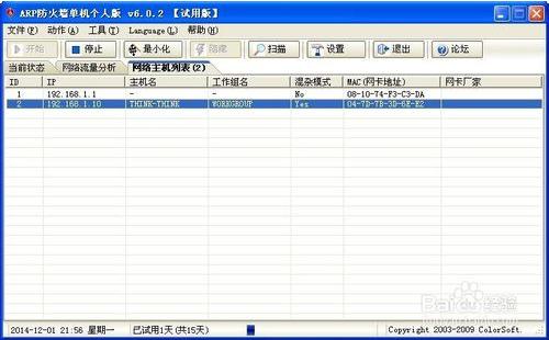 紅色的IP就是代表異常的IP地址,如果發(fā)現(xiàn)有ARP工具,它就自動(dòng)攔截提示你啦,很好用。