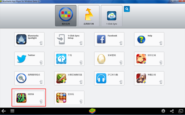 第四步:成功后,打開安卓模擬器BlueStacks,如下圖中所示,點圖標,就可以電腦上運行《綠茶妹》這款游戲啦!