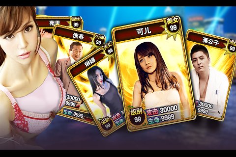 2.通向成功的旅程并不總是荊棘叢生,也有紅袖添香助你事半功倍。游走在《綠茶妹》的世界里,夜店、豪宅、KTV林立的街頭,邂逅你命中注定的女神。萌妹、美女兩大陣營與魔界、土豪分庭抗禮。海量真人熱圖,囊括天南海北當紅嫩模、清純校花,網絡紅人,龐大的美女卡牌陣容有圖有真相,令貪婪心魔聞風喪膽。