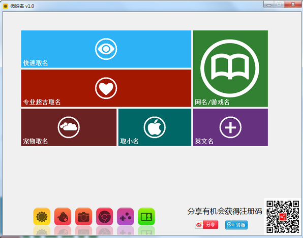 微姓名取名軟件,根據(jù)姓名學三才五格生肖喜忌音形意等多方面綜合考慮, 提供最適合寶寶命理,又音形意俱佳的高分吉名方案,可以給寶寶一個好的命局, 讓他贏在人生起跑線。除此之外軟件更提供寵物取名/取網(wǎng)名/取游戲名/取家族名 /取小名/取英文名/八字計算/姓名分析/新華字典等諸多實用功能。