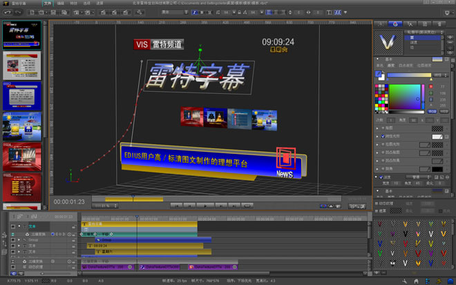 雷特字幕軟件是北京雷特世創(chuàng)科技有限公司為了更好的滿足EDIUS用戶在高/標清環(huán)境下的圖文制作,而開發(fā)的全新字幕軟件。其提供了:三次Bezier曲線調(diào)節(jié)、全浮點圖形坐標、真三維空間特技調(diào)節(jié)、基于GPU的特效關(guān)鍵幀調(diào)節(jié)、多種字幕播出方式等諸多全新功能。在保證強大的穩(wěn)定性和實時性的同時,提供了更加豐富的圖文動畫、滾屏、掃光和字幕模板效果。是EDIUS用戶高/標清圖文制作的理想平臺。