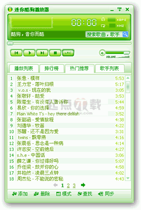 迷你酷狗MiniKuGoo V1.017 綠色免費版 迷你酷狗(MiniKuGoo)是酷狗(KuGoo)公司自主研發(fā)出品的一款同時支持在線試聽和本地播放的音頻播放器