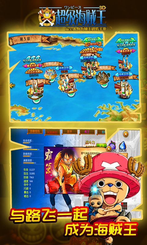 100%忠于原著!最火爆人氣動(dòng)漫手機(jī)游戲《超級(jí)海賊王3D》以RPG類型為基礎(chǔ),打造融合原版故事、勁爽玩法、3D格斗等多樣元素的世界體系,超高水準(zhǔn)再鑄大海賊時(shí)代。極致美術(shù)風(fēng)格結(jié)合經(jīng)典劇情設(shè)定,強(qiáng)調(diào)鮮活經(jīng)典海賊人物角色扮演體驗(yàn)。新世界超強(qiáng)聯(lián)盟組團(tuán)打怪,超新星與惡魔BOSS的最終對(duì)決,熱血刺激海上競(jìng)技PK……即刻加入這場(chǎng)能與你互動(dòng)的海賊王之旅吧,One Piece超級(jí)寶藏非你莫屬。