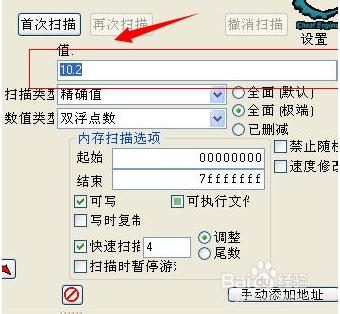 接下來(lái),我們需要在搜索的時(shí)候選定 -- 4字節(jié) --- 精確數(shù)值 ---