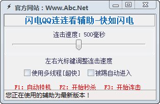 閃電QQ連連看輔助是一款基于QQ連連看角色版的輔助工具,具有自動(dòng)掛機(jī),開(kāi)始秒殺等等功能。該QQ連連看輔助器無(wú)需安裝,界面簡(jiǎn)潔易操作,您可以自由選擇鼠標(biāo)連擊速度,設(shè)定是否使用多線程以及被踢自動(dòng)進(jìn)入功能,是QQ連連看玩家必備輔助工具。