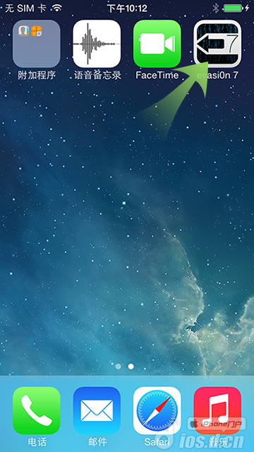 第二步:重啟之后點(diǎn)擊設(shè)備桌面上的evasi0n 7圖標(biāo),設(shè)備會(huì)再次重啟。