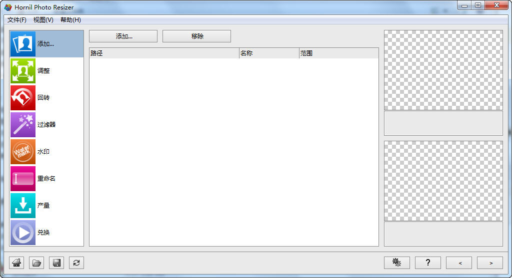 您的位置:起點(diǎn)軟件下載電腦軟件系統(tǒng)軟件圖像批處理軟件(Hornil Photo Resizer) v1.0 免費(fèi)版