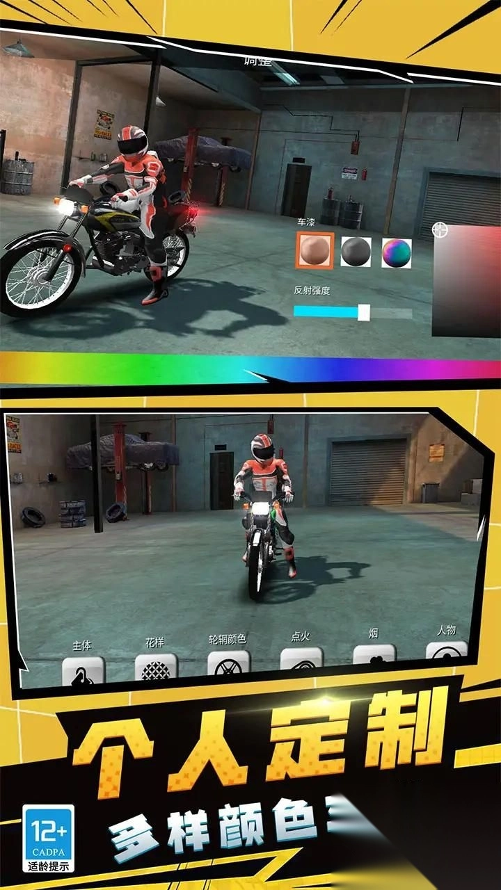 3、享有自由定制摩托車外觀以及挑選特技動作組合的權利,從而帶來別具一格的個性化賽車體驗。