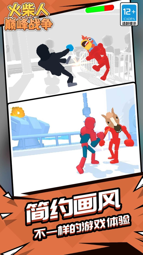火柴人巔峰戰(zhàn)爭是一款趣味十足的動作格斗游戲,游戲畫風(fēng)簡約。在這里,你能挑選心儀角色開啟格斗PK,與形形色色的對手展開較量。游戲中各種魔性的動作招式任你使用,讓你盡情感受那爽快解壓的打斗場景。當(dāng)然,你也會遭遇更多敵人,但這也會讓你充分享受其中!