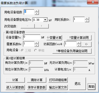 電氣設(shè)計負(fù)荷計算是一款非常專業(yè)的電氣負(fù)荷計算軟件,專門適用于電器設(shè)計人員,進(jìn)行電器負(fù)荷計算,對他們來是是一大福利啊,軟件主要根據(jù)需要系數(shù)法負(fù)荷計算,用電設(shè)備組數(shù)、用電設(shè)備額定電壓有功計算負(fù)荷Pjs,無功計算負(fù)荷Qjs,視在計算負(fù)荷Sjs,計算電流Ijs