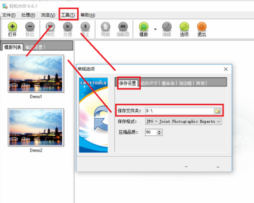 1、直接打開軟件,點擊工具,進入保存設(shè)置界面,在保存文件夾里更改保存路徑,點擊確定即可完成操作
