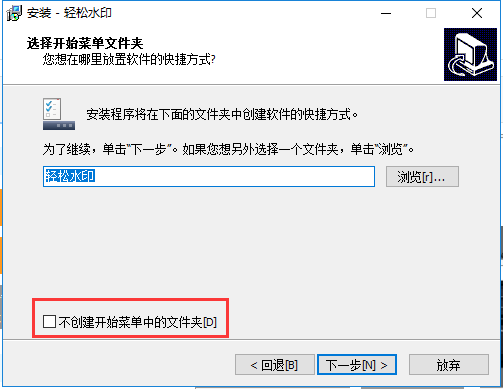 1、在本站下載輕松水印破解版后,在電腦本地得到一個壓縮包,使用360壓縮軟件解壓后,雙擊.exe文件進入輕松水印安裝導(dǎo)向,點擊【下一步】繼續(xù)安裝,或者你也可以點擊【放棄】退出軟件安裝。