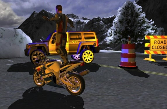 核心內(nèi)容方面并未有做太大的改進(jìn),依然是以摩托車(chē)競(jìng)技加上原始的暴力行為作為游戲玩點(diǎn),繼承了前幾座多輛賽車(chē)和角色模型可選的優(yōu)點(diǎn),個(gè)性化定制較強(qiáng),除此之外加入了多人模式的支持,你可以和好友來(lái)一場(chǎng)硬碰硬的較量。最出色的地方當(dāng)屬游戲的動(dòng)態(tài)特效了,不過(guò)實(shí)測(cè)在低端機(jī)上面就會(huì)很卡了,非常影響游戲體驗(yàn),當(dāng)然設(shè)置里面也有圖像質(zhì)量選項(xiàng)可以自行調(diào)節(jié),操作則引入了四向的十字鍵來(lái)切換視角,其它則包含攻擊和特技觸發(fā)按鈕。