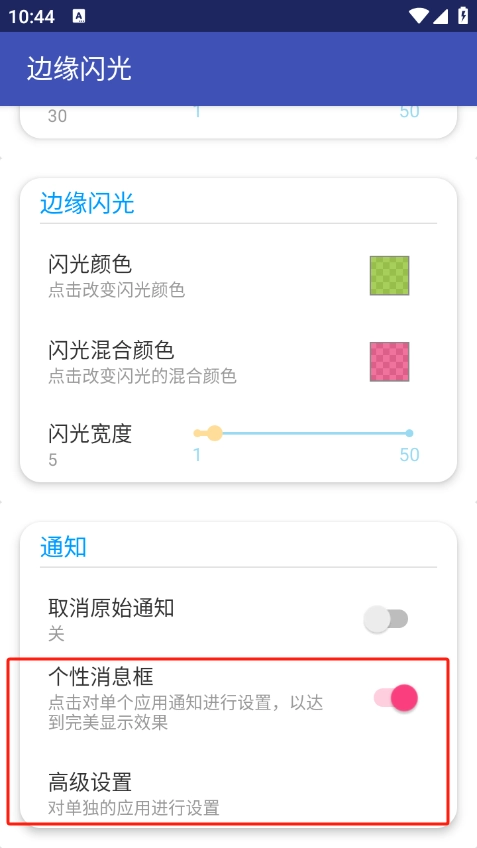 4、倘若您希望特定某個app閃爍,可在高級設置中進行相關(guān)操作。