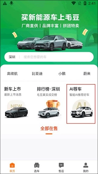 我們進(jìn)入軟件后點(diǎn)擊首頁的【AI薦車】
