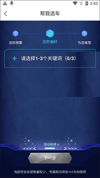 接著挑選我們想要用于查找汽車的關(guān)鍵詞,比如油電混合、4座之類的。