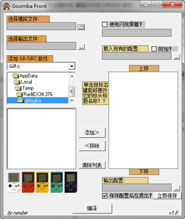 Goomba Front是一款可以將GB/GBC游戲轉(zhuǎn)換成GBA游戲的工具,轉(zhuǎn)換后在GBM、GBA、GBASP、以及NDSL上運(yùn)行。該gb/gbc轉(zhuǎn)gba工具使用簡單,操作方法可參考以下教程。