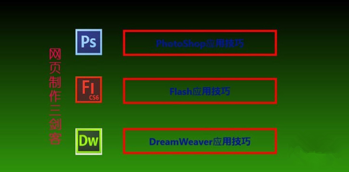 網(wǎng)頁三劍客,是一套強(qiáng)大的網(wǎng)頁編輯工具,最初是由Macromedia公司開發(fā)出來的。由Dreamweaver,F(xiàn)ireworks,F(xiàn)lash三個(gè)軟件組成,俗稱網(wǎng)頁三劍客。Dreamweaver 是一個(gè)“所見即所得”的可視化網(wǎng)站開發(fā)工具,主要用于動(dòng)態(tài)網(wǎng)頁和靜態(tài)網(wǎng)頁的開發(fā);Fireworks主要是用于對網(wǎng)頁上常用的jpg、gif的制作和處理,也可用于制作網(wǎng)頁布局;Flash主要用來制作動(dòng)畫,現(xiàn)推出Flash平臺(tái),可預(yù)見有極好的前景。