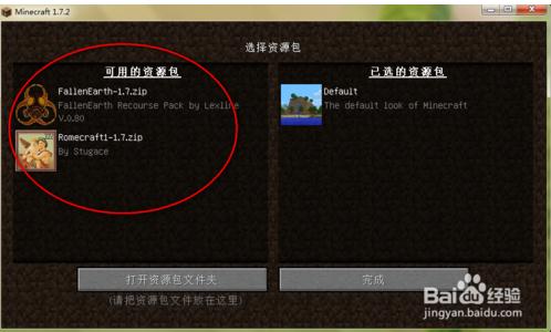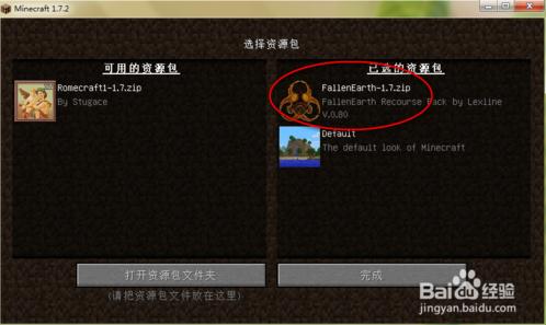 選擇好要使用的資源包后,點擊【完成】,即可以加載該資源包。
