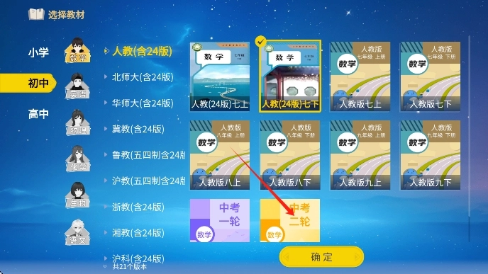 2、接下來選擇自身年齡以及所需學(xué)習(xí)的學(xué)科內(nèi)容,點(diǎn)擊確認(rèn)。
