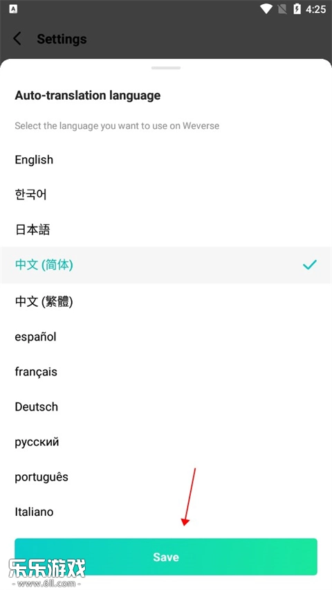 3、選取簡體中文,點擊頁面最下方中間位置的“Save”進行保存。
