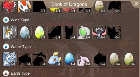 可以孵化火、水、地、風、光等屬性的龍蛋,得到不同的龍。