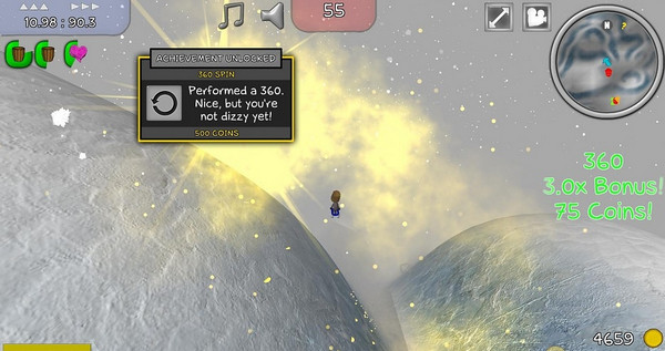 玩家從高山上往下速降,在速降的時(shí)候吃金幣、躲避障礙,還會(huì)隨機(jī)刷新攔路的大雪怪,相比于普通的滑雪游戲,本作在內(nèi)容上更加的多樣化,體育和RPG的組合很有創(chuàng)意!游戲擁有無(wú)盡的地形,可升級(jí)的載具、技能以及藥劑,和前段時(shí)間很火的滑雪大冒險(xiǎn)差不多,風(fēng)格獨(dú)特。