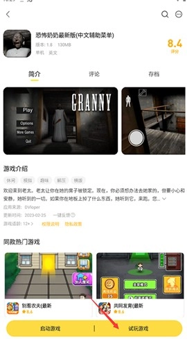 2、點擊頁面下方的“試玩游戲”按鈕,就能開啟體驗,此按鈕等同于游戲的入口。