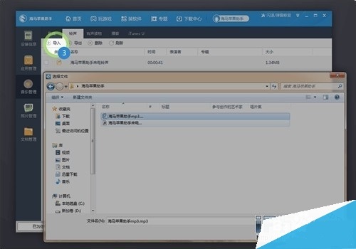 其次選擇你準(zhǔn)備好的鈴聲進(jìn)行導(dǎo)入,目前海馬助手支持m4r和mp3兩種格式的鈴聲導(dǎo)入,用戶可以根據(jù)自己下載的鈴聲類型自由選擇。