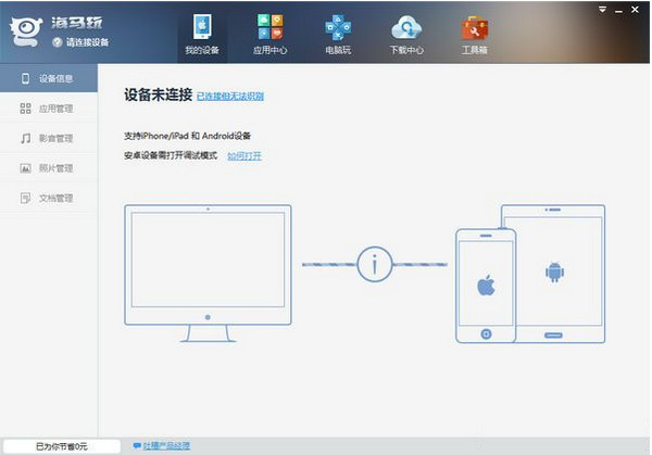 首先打開海馬助手;注意這次打開的是PC端的海馬哦!