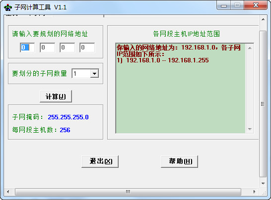 在地址欄輸入一個(gè)網(wǎng)絡(luò)地址(注意:由于考慮到如 x.x.0.x 等一些帶0的網(wǎng)絡(luò)地址,所以點(diǎn)和回車有不同的作用,你不妨試試),然后選擇要?jiǎng)澐值淖泳W(wǎng)個(gè)數(shù)(子網(wǎng)個(gè)數(shù)為固定值,如果你要?jiǎng)澐值淖泳W(wǎng)個(gè)數(shù)不在其中,你就要選擇一個(gè)大于它的最小數(shù)。目前本軟件最大只能支持256個(gè)網(wǎng)絡(luò)的劃分),然后按計(jì)算即可計(jì)算出各網(wǎng)段的IP范圍、網(wǎng)絡(luò)掩碼、各網(wǎng)段最多IP數(shù)。
