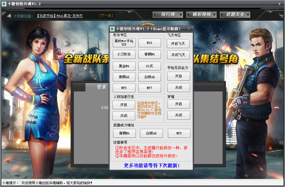 1、秒殺專(zhuān)區(qū)中,主武器只能修改一種,修改多了程序容易崩潰