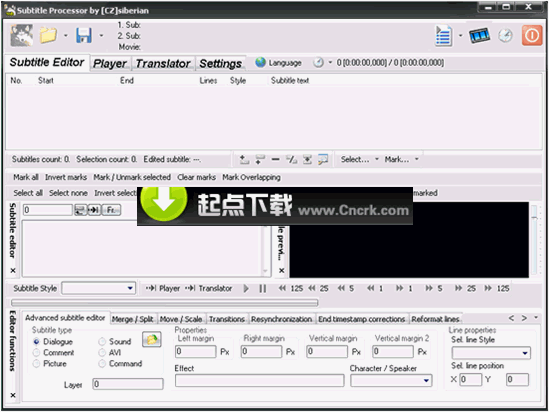 一個字幕編輯處理器,可以用于修復(fù)、翻譯字幕文件。它使用方便,可以集成在播放器中;功能強大,可以對字幕進行合并或分割,也可以調(diào)整時間實現(xiàn)字幕與影片同步