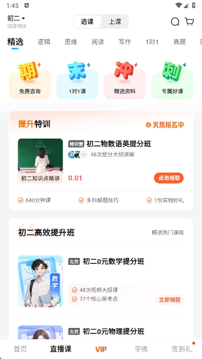 4、在直播課板塊,您能夠挑選自己感興趣的課程進(jìn)行觀看。