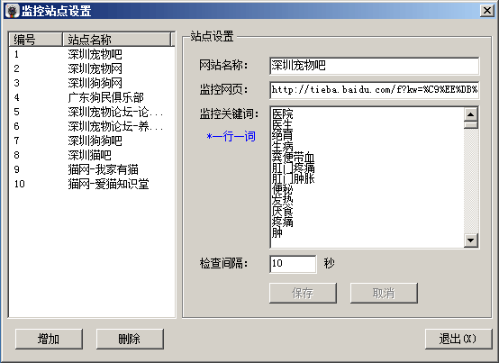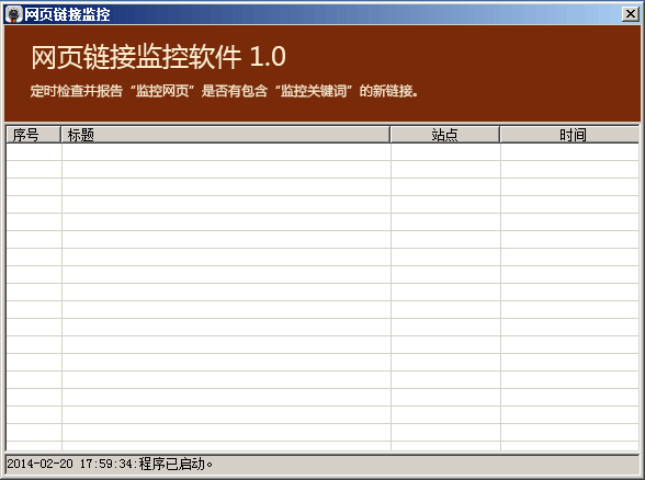 網(wǎng)頁(yè)鏈接監(jiān)控是一款小巧實(shí)用的網(wǎng)頁(yè)監(jiān)控鏈接軟件,該軟件會(huì)自動(dòng)對(duì)用戶輸入的關(guān)鍵詞和網(wǎng)址在百度貼吧、本地論壇等檢測(cè),一旦出現(xiàn)相關(guān)內(nèi)容就會(huì)出現(xiàn)在顯示框中,站長(zhǎng)必備網(wǎng)頁(yè)鏈接監(jiān)控軟件。