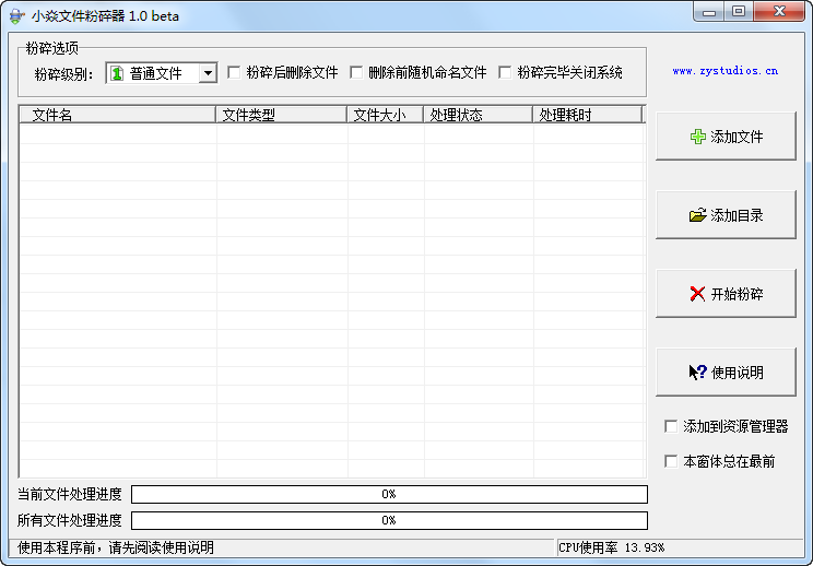 小焱文件粉碎器是一款簡(jiǎn)單好用的文件粉碎器,可以快速粉碎文件,而且粉碎過程不會(huì)出現(xiàn)假死等現(xiàn)象,和同類文件粉碎器相比,占有很大的優(yōu)勢(shì)。