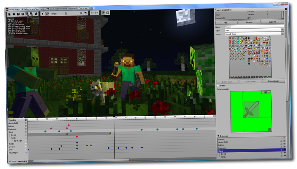 我的世界動畫制作器的形式和Flash差不多~分成主畫面、時間軸和側邊欄。唯一不同的是,F(xiàn)lash是2D,Mine-imator是3D,而且是專門制作MC動畫/視頻的!