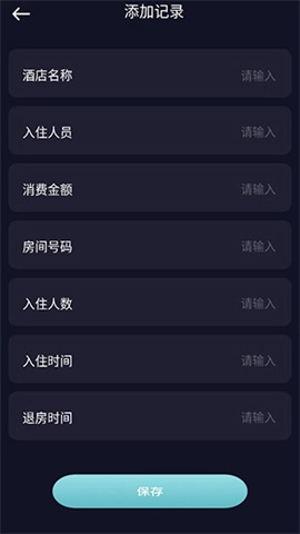 用戶可輸入相關(guān)信息,如酒店名稱、入住人員等(以國內(nèi)酒店為例),完成后點(diǎn)擊“保存”。