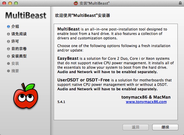 MultiBeast非常強大,可以做引導、安裝聲卡、網(wǎng)卡、顯卡,集成系統(tǒng)工具有:重建Cache、修復權限、大量驅(qū)動、引導、補丁內(nèi)核、引導時間配置文件,非常適合用于安裝驅(qū)動,尤其是黑蘋果。【使用方法】