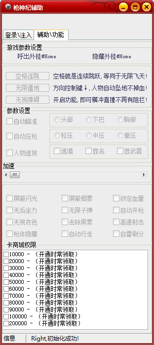 歪掛槍神紀輔助是為最新射擊網(wǎng)游槍神紀提供的輔助作弊工具,槍神紀輔助集無限精力、鎖血、隱身等多種強有力功能于一身,幫助玩家獲得更加優(yōu)質(zhì)的射擊體驗。