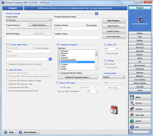 Pantaray QSetup Installation Suite Pro是一款簡便易用的安裝程序制作工具,它提供腳本編輯方式及眾多應(yīng)有盡有的安裝選項,能夠讓你在很短的時間內(nèi)就能夠創(chuàng)建性能穩(wěn)定而又可靠的安裝程序,方便在網(wǎng)上下載、刻錄到光盤中或者放到文件服務(wù)器上。