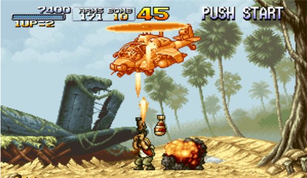 合金彈頭1是日本SNK公司推出的一款2D橫板射擊過關(guān)游戲,游戲運(yùn)用了NeoGeoMVS強(qiáng)大機(jī)能的MS憑借空前的細(xì)膩畫風(fēng)和豐富動(dòng)畫而被眾多玩家而喜愛。合金彈頭1游戲最吸引人的一點(diǎn)就是其中各種豐富的武裝載具設(shè)定,在最早的一代中只有Metal Slug一種載具存在,而在續(xù)作中則陸續(xù)出現(xiàn)了很多新型載具,這些載具的設(shè)計(jì)往往別出心裁甚至非?;恼Q,但卻很好地與游戲的幽默風(fēng)格融合在一起。