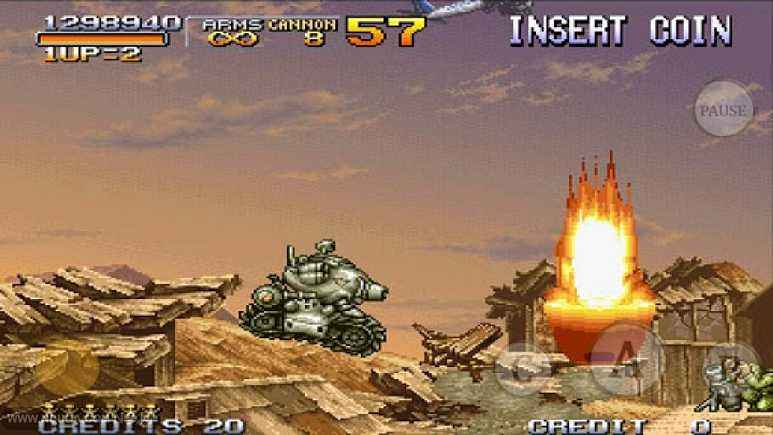 3、合金彈頭無敵版也對(duì)原作中的眾多元素進(jìn)行了保留,比如小型萬能戰(zhàn)車(Metal Slug)在內(nèi)的載具,以及超多類型的武器與敵人,關(guān)卡中千變?nèi)f化的機(jī)關(guān)。