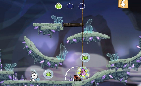 《點心大作戰(zhàn)(Eets Munchies)》是一款物理解謎游戲,玩家需要控制一只饞嘴的兔子,穿過屏幕中復雜的關(guān)卡,努力吃到屏幕中所有的點心。點心分為兩種,一種是每關(guān)終點處的蛋糕,另一種則是散落在屏幕中的各種甜食。只有把所有的甜食集齊后,再到終點處吃到點心,你才能以最高的分數(shù)過關(guān)