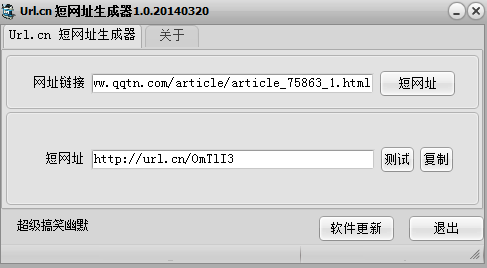 Url.cn短網(wǎng)址生成器是一款小巧便捷的網(wǎng)址縮短工具。經(jīng)常上網(wǎng)的朋友都知道有些網(wǎng)址非常長(zhǎng),這樣不僅容易出錯(cuò),而且再你發(fā)布時(shí)也步怎么美觀。所以使用這款工具縮短你的網(wǎng)址長(zhǎng)度,分享你的快樂(lè)生活