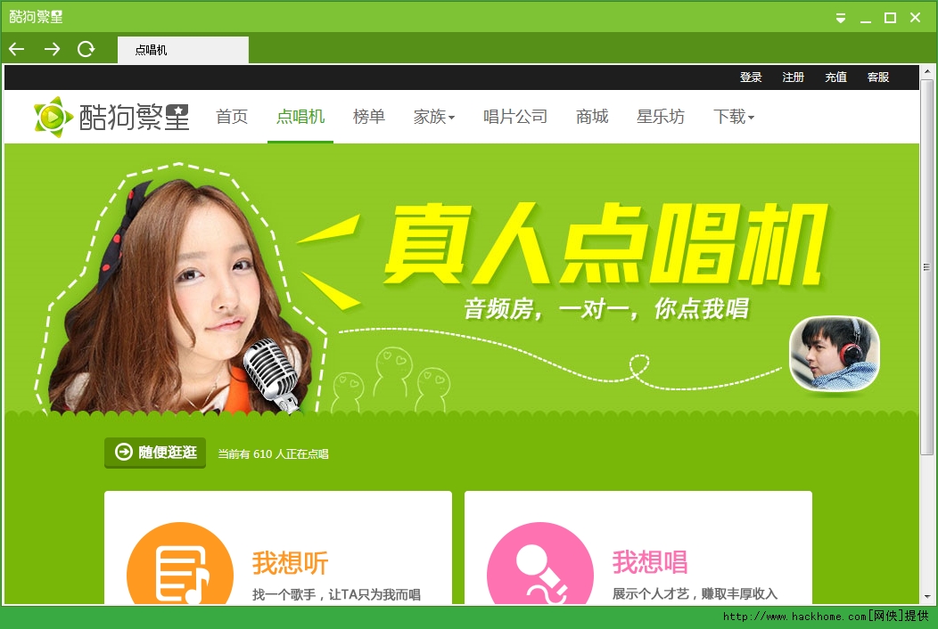 支持?jǐn)?shù)萬(wàn)人同時(shí)在線(xiàn)參與互動(dòng),堪比小型演唱會(huì);使用酷狗KRC精準(zhǔn)歌詞、伴奏曲庫(kù)、點(diǎn)歌技術(shù),把KTV搬到電腦屏幕前;首頁(yè)高頻自動(dòng)刷新直播間列表,保證直播信息的即時(shí)性。