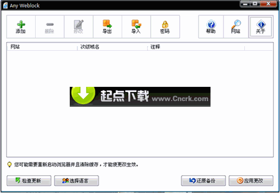 Any Weblock v1.1.0 多國(guó)語(yǔ)言綠色免費(fèi)版 Any Weblock是一個(gè)上網(wǎng)管理工具,可以對(duì)能夠登陸的網(wǎng)站進(jìn)行設(shè)置,防止非法的訪問。它使用方便,支持密碼保護(hù)功能,可以進(jìn)行自動(dòng)備份。對(duì)于家里有兒童和公司的網(wǎng)絡(luò)管理員來(lái)說(shuō),是一個(gè)不錯(cuò)的選擇