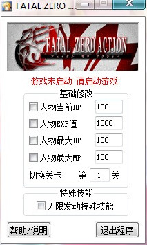 支持fatal zero action1.01游戲版本,啟動(dòng)修改器之前請先運(yùn)行游戲,不然修改器將無效。
