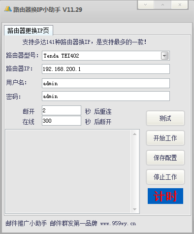 路由器換IP小助手是為方便使用路由器上網(wǎng)用戶快速變更IP地址的一款軟件?,F(xiàn)在很網(wǎng)站的發(fā)布和游戲登錄都會(huì)對(duì)同一IP的用戶登錄進(jìn)行限制,我們想快捷更換IP地址又需要斷網(wǎng)重啟路由器,非常麻煩。使用路由器IP小助手只需一鍵就可以幫你搞定IP更換,非常簡(jiǎn)單方便。支持目前市面上所有路由器使用,歡迎下載。